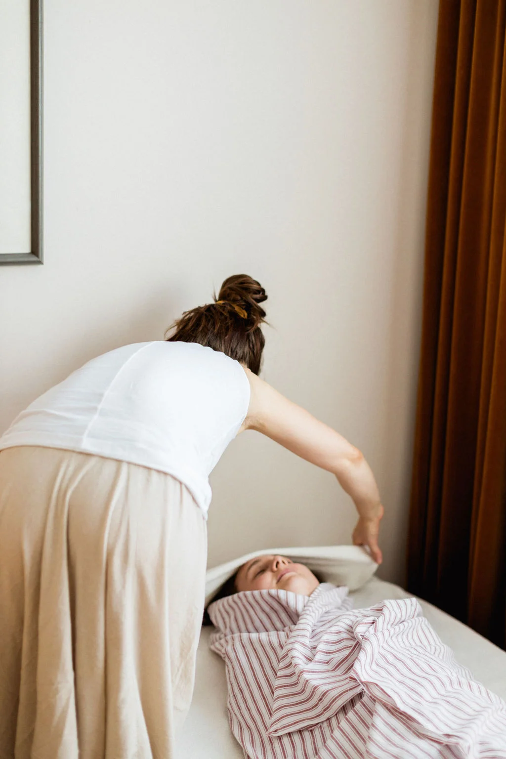Ganz in der Stille, mit Unterstützung von Aroma-Ölen, werden verschiedene Stellen und ausgewählte Punkte am bekleideten Körper gedruckt oder gehalten. Die Ruhe und Geborgenheit erlauben es deinem Nervensystem sich zu regulieren und die passende Impulse werden intuitiv von deinem Körper aufgenommen. Während außen alles still erscheint, bewegt und entfaltet sich sehr viel in dir drinnen.